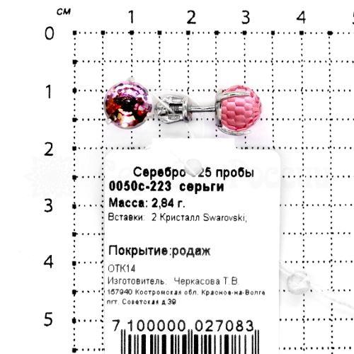Серьги-пусеты из серебра с кристаллами Swarovski родированные 925 пробы 0050с-223