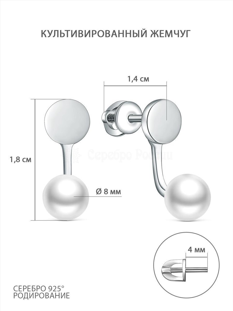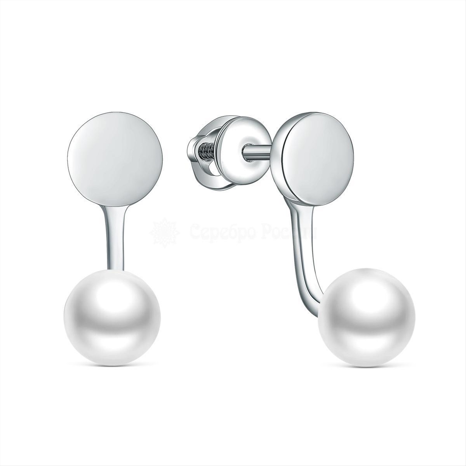 Серьги-пусеты из серебра с культ.жемчугом родированные (трансформеры, 2 в 1) 925 пробы с1608р1005