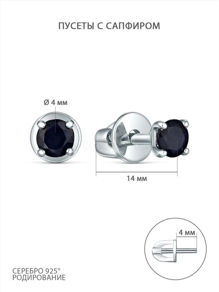 Серьги-пусеты из серебра с сапфиром родированные 04-202-0239-41