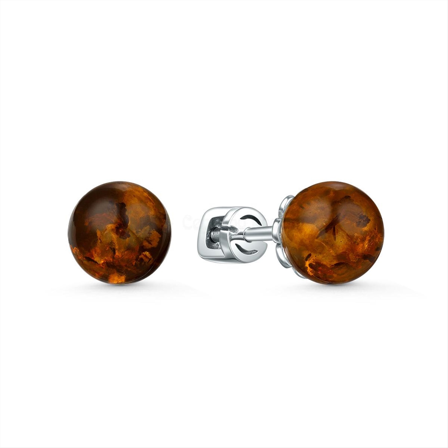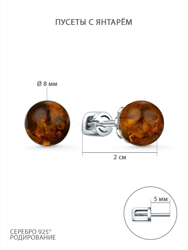 Серьги-пусеты из серебра с янтарём родированные 4-666р640