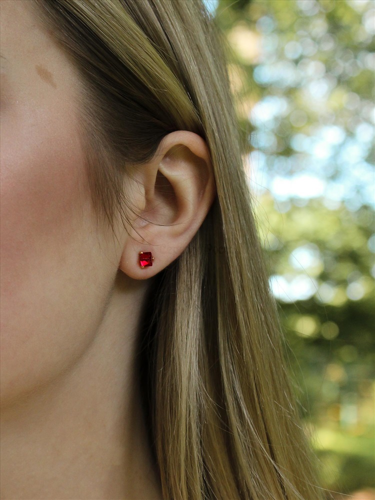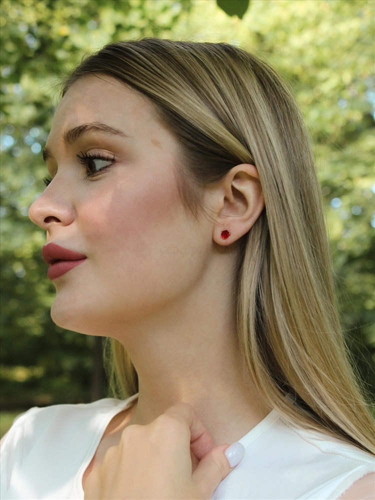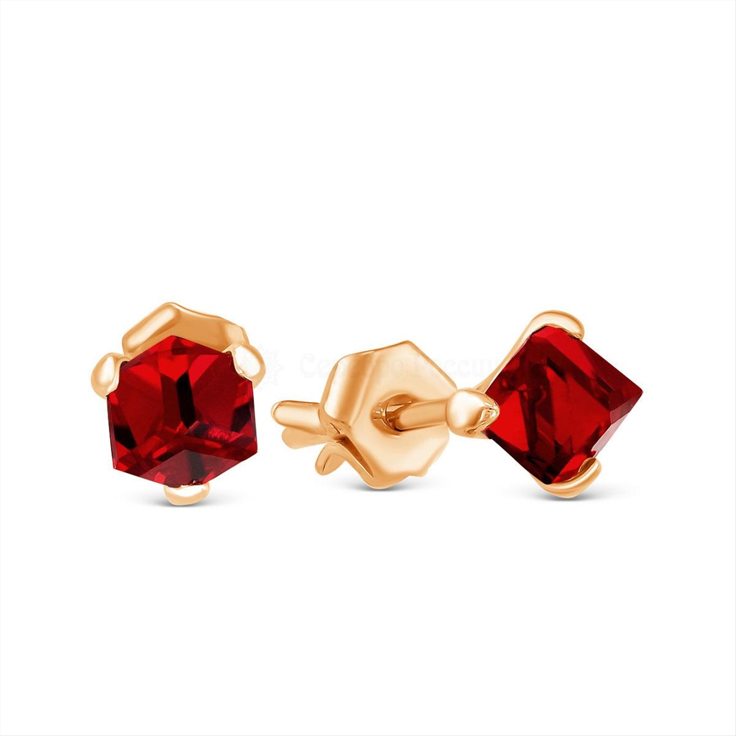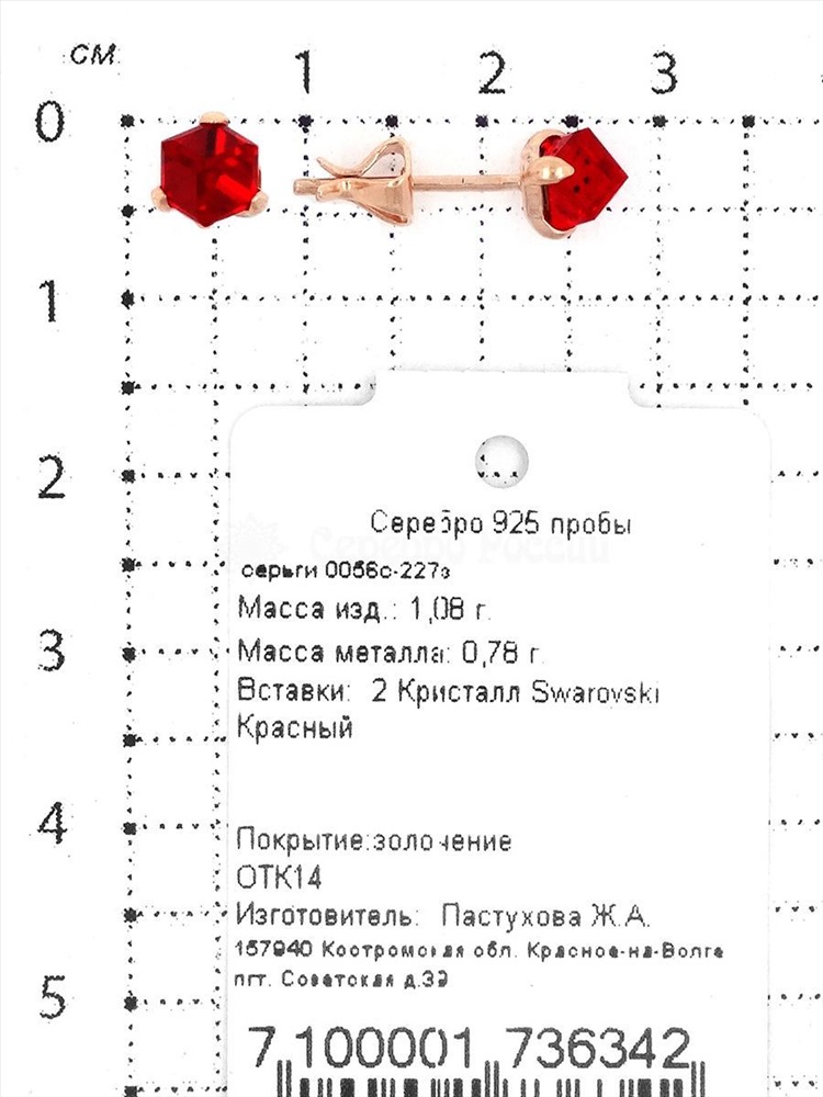 Серьги-пусеты из золочёного серебра с кристаллами Swarovski Красный 925 пробы 0056с-227з