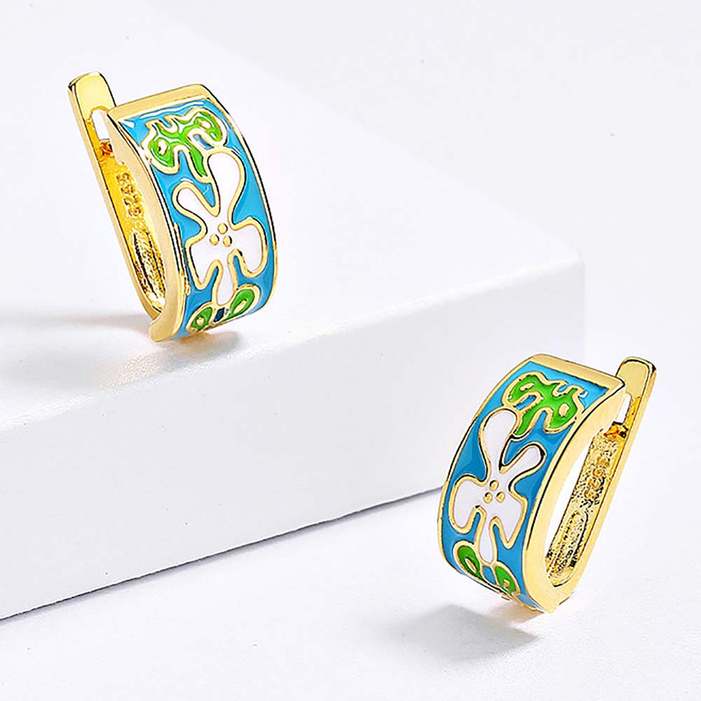 Серьги с английским замком в винтажном стиле с золотым покрытием 14K 1 мкр с эмалью