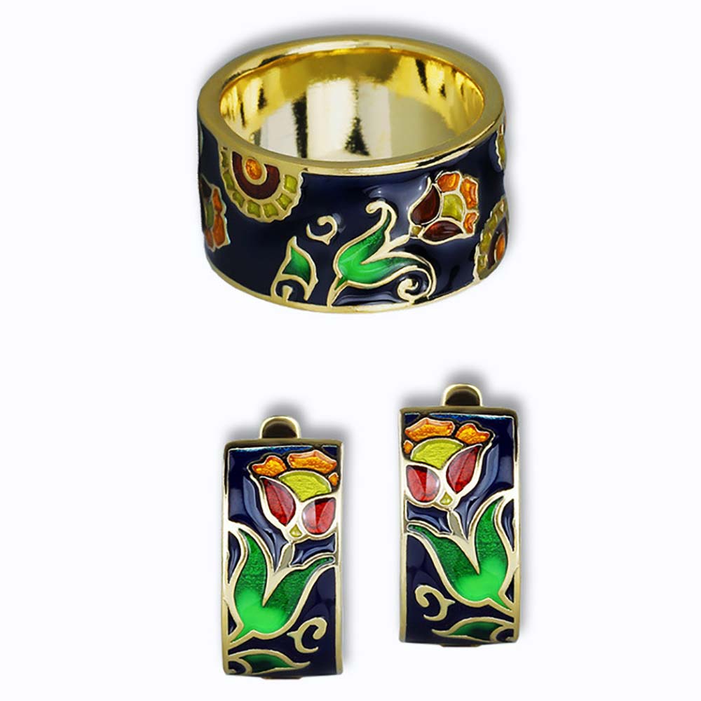 Серьги с английским замком в винтажном стиле с золотым покрытием 14K 1 мкр с эмалью