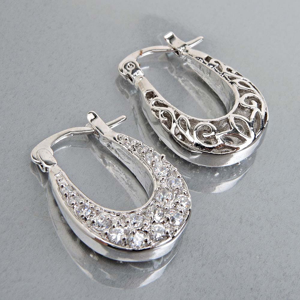 Замок: Английский Тема: Свадебные украшения, Акция Цвет: Белый Металл: Родиевое покрытие Материал: Ювелирный сплав Вставка: Циркон Производство: Корея Количество: шт Серьги с английским замком белые с родиевым покрытием с цирконами (фианитами)