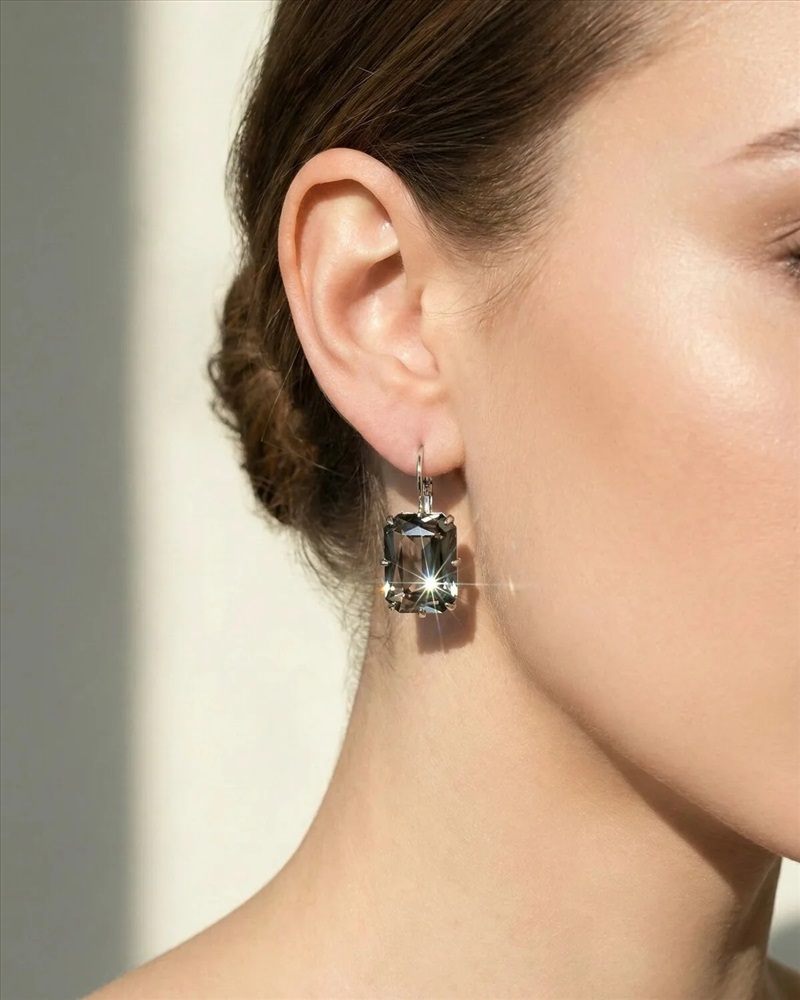 Вставка: кристалл Preciosa Материал изделия: покрыто серебром 999 пробы Размер: 3 см Цвет кристалла: Black Diamond Серьги изготовлены из специального гипоаллергенного ювелирного сплава, покрыто серебром высшей 999 пробы. Для вставки используются стразы Preciosa