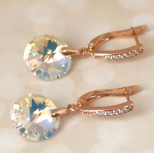Серьги с покрытием золота. Материал: бижутерный сплав. Покрытие: золото 18К. Вставка: австрийские кристаллы. Размер серьги: 3 см. Размер камня: 1,2 см. Цвет камня: хамелеон.