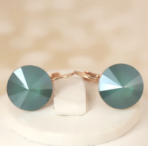 Серьги с покрытием золота. Материал: бижутерный сплав. Покрытие: золото 18К. Вставка: австрийские кристаллы. Размер серьги: 1,8 см. Размер камня: 1,1 см. Цвет камня: зеленый (матовый).