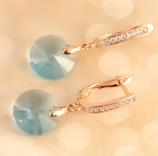 Серьги с покрытием золота. Материал: бижутерный сплав. Покрытие: золото 18К. Вставка: австрийские кристаллы. Размер серьги: 3 см. Размер камня: 1,2 см. Цвет камня: голубой.