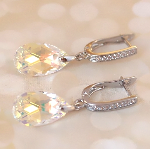 Серьги с покрытием родий. Материал: бижутерный сплав. Покрытие: родий. Вставка: австрийские кристаллы. Размер серьги: 3,3 см. Размер камня: 1,5 см. Цвет камня: хамелеон.