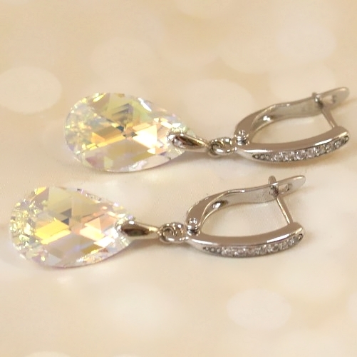 Серьги с покрытием родий. Материал: бижутерный сплав. Покрытие: родий. Вставка: австрийские кристаллы. Размер серьги: 3,3 см. Размер камня: 1,5 см. Цвет камня: хамелеон.