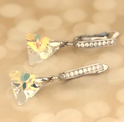 Серьги с покрытием родий. Материал: бижутерный сплав. Покрытие: родий. Вставка: австрийские кристаллы. Размер серьги: 2,9 см. Размер камня: 1,2 см Цвет камня: хамелеон.