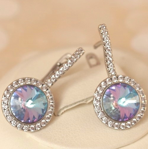 Серьги с покрытием родий. Материал: бижутерный сплав. Покрытие: родий. Вставка: австрийские кристаллы. Размер серьги: 2,2 см. Размер камня: 0,8 см. Цвет камня: хамелеон. Застежка: английский замок.