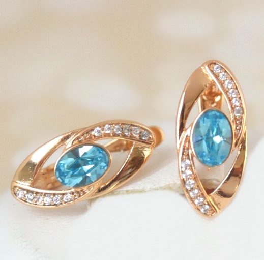 Серьги с покрытием золота. Материал: бижутерный сплав. Покрытие: золото 18К. Вставка: австрийские кристаллы. Размер серьги: 1,7 см. Размер камня: 0,6 см. Цвет камня: голубой.