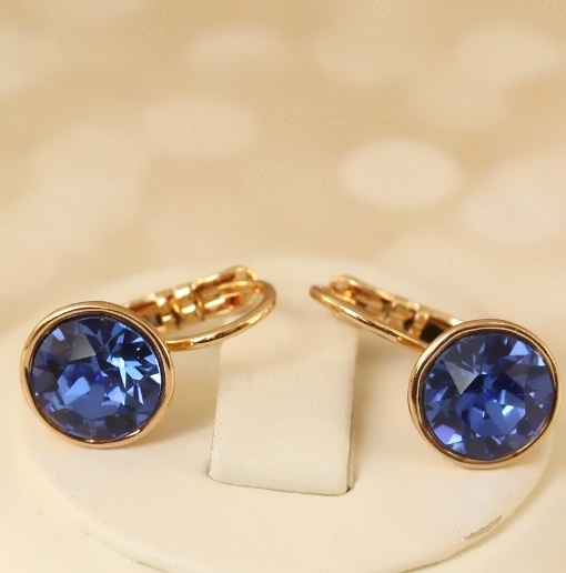 Серьги с покрытием золота. Материал: бижутерный сплав. Покрытие: золото 18К. Вставка: австрийские кристаллы. Размер серьги: 1,7 см. Размер камня: 0,9 см (с ободком) Цвет камня: Ярко-синий