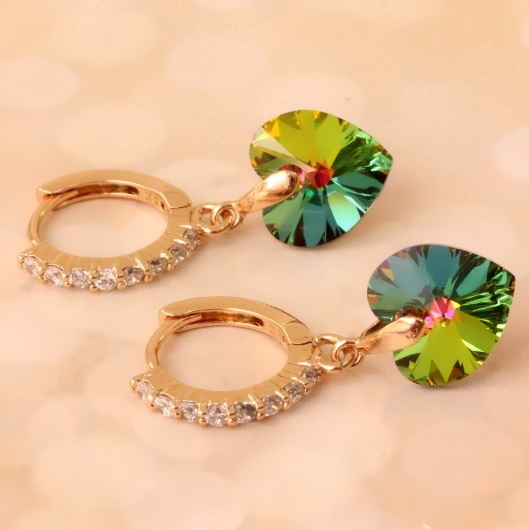 Серьги с покрытием золота. Материал: бижутерный сплав. Покрытие: золото 18К. Вставка: австрийские кристаллы. Размер серьги: 2,7 см. Цвет камня: хамелеон.