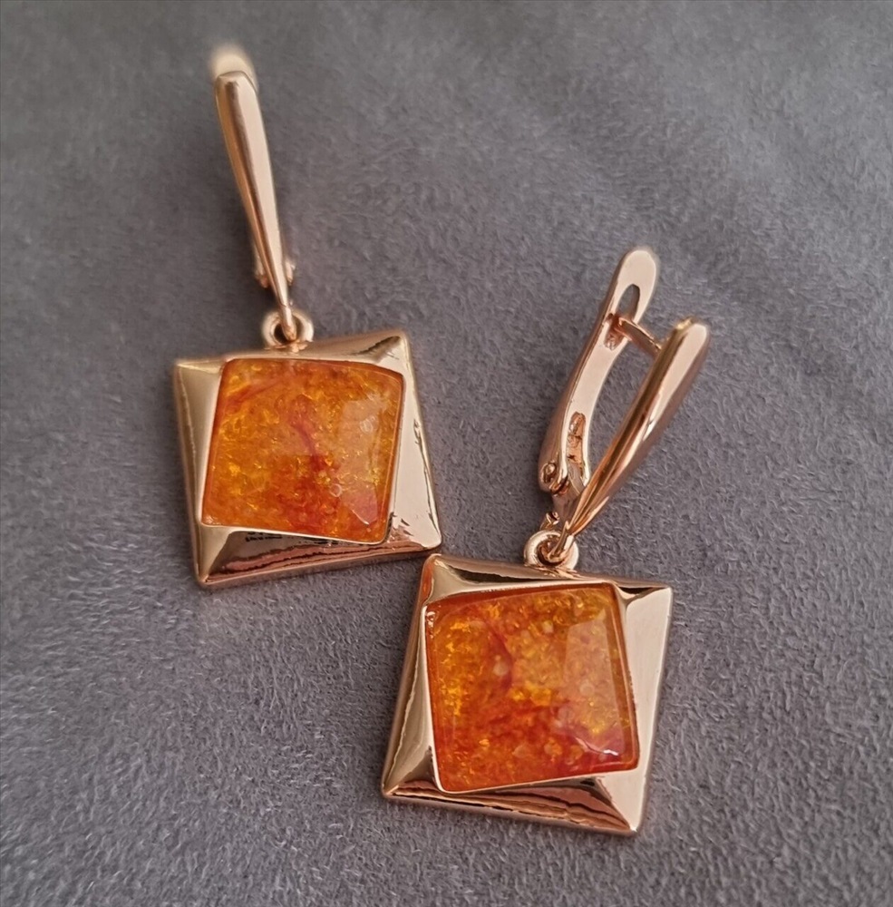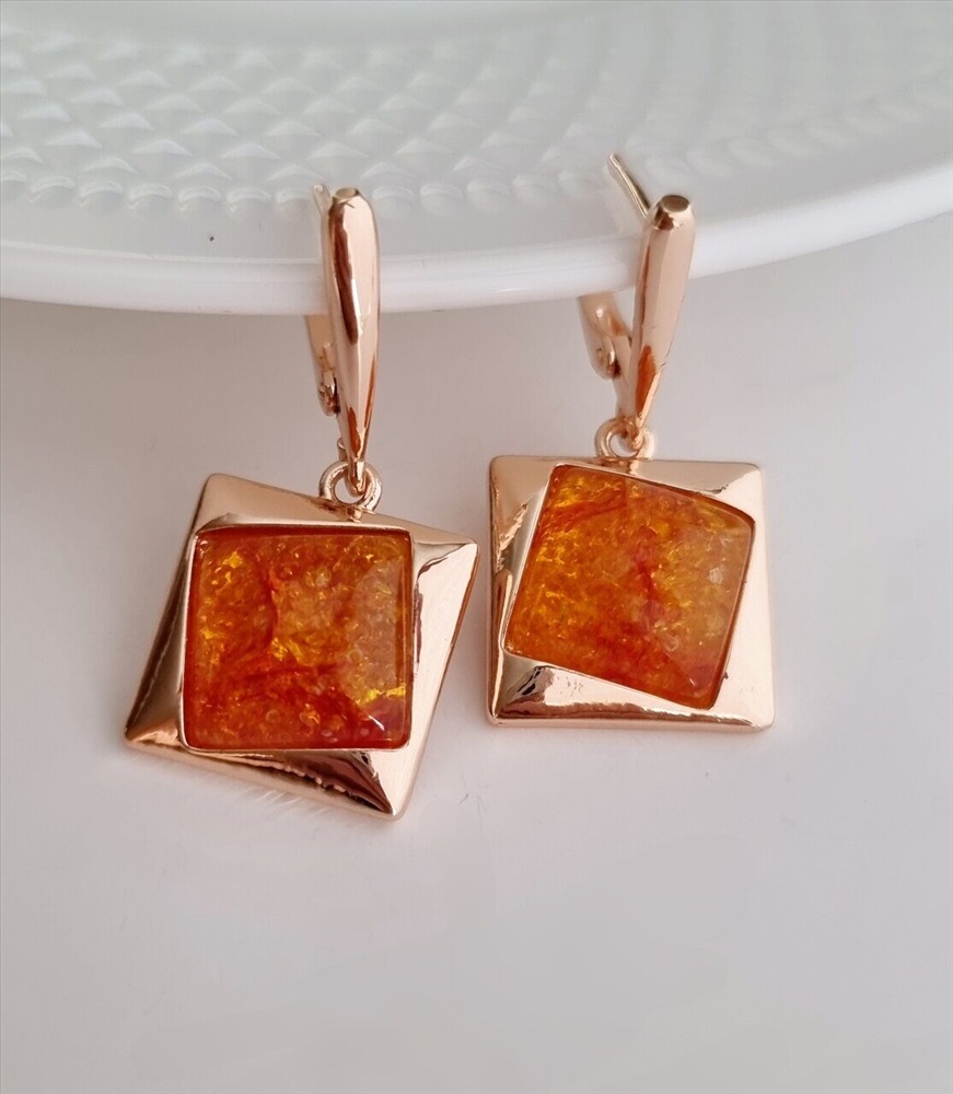 Серьги висячие янтарные, покрытие позолота, коллекция "Дубайское Золото", арт. 314.455