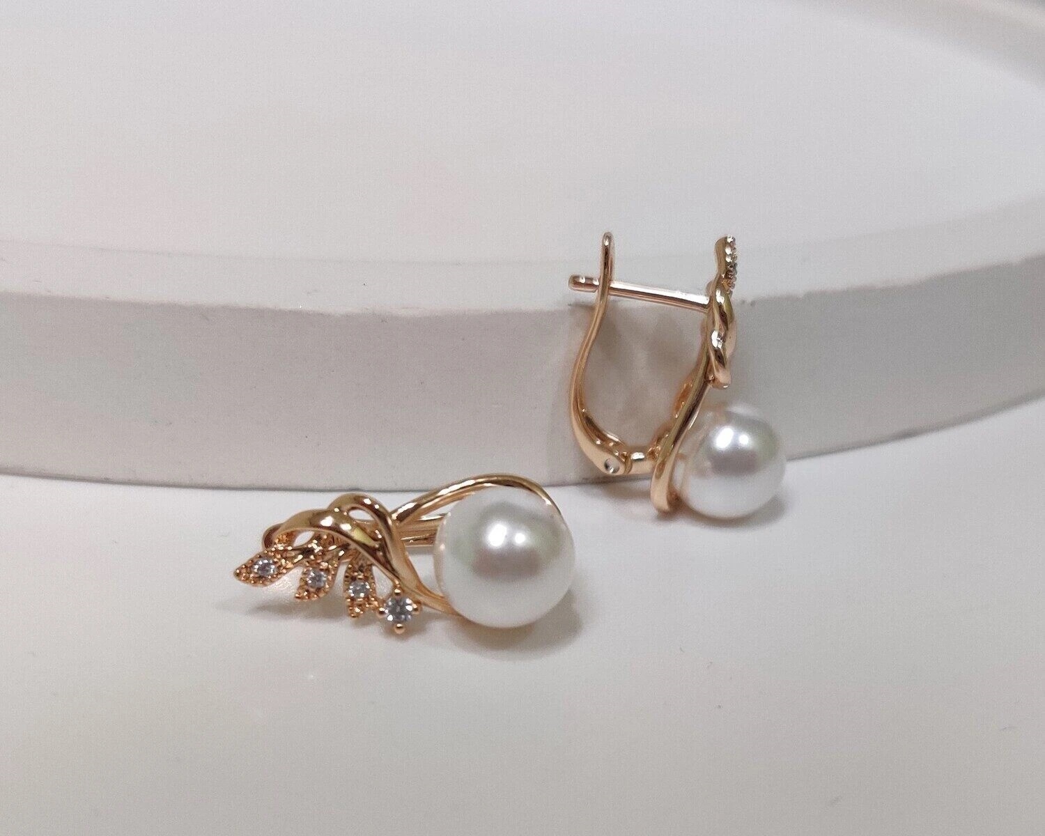 Вставка: Жемчуг Майорика - 0.8 см Материал изделия: ювелирный сплав Размер: 2 см Вид(модель) сережек: Английский замочек Красивые серьги с благородными цирконами изготовлены из специального гипоаллергенного ювелирного сплава