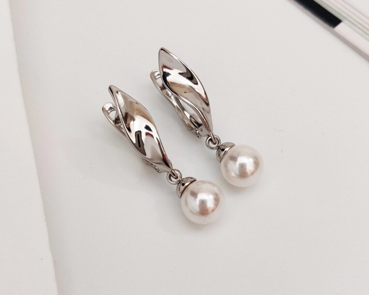 Вставка: Жемчуг Майорика 0.7см Материал изделия: ювелирный сплав Размер: 2.5 см Вид(модель) сережек: Английский замочек Красивые серьги с благородными цирконами изготовлены из специального гипоаллергенного ювелирного сплава
