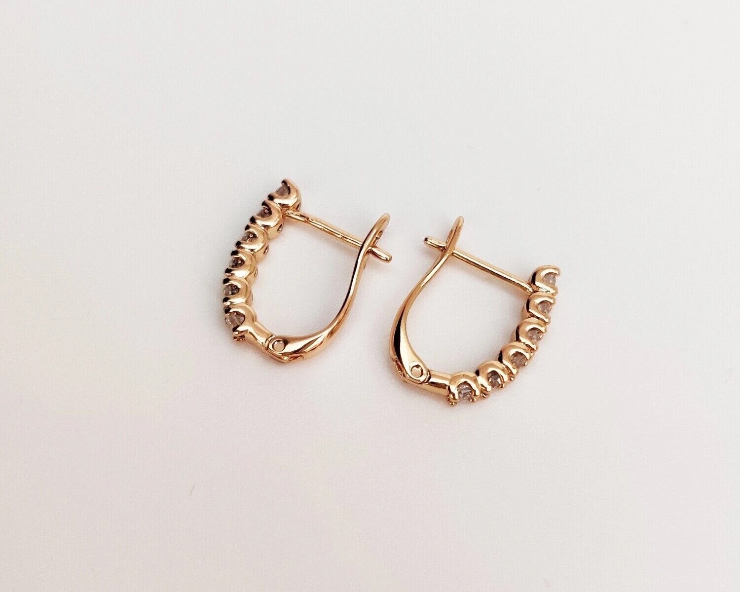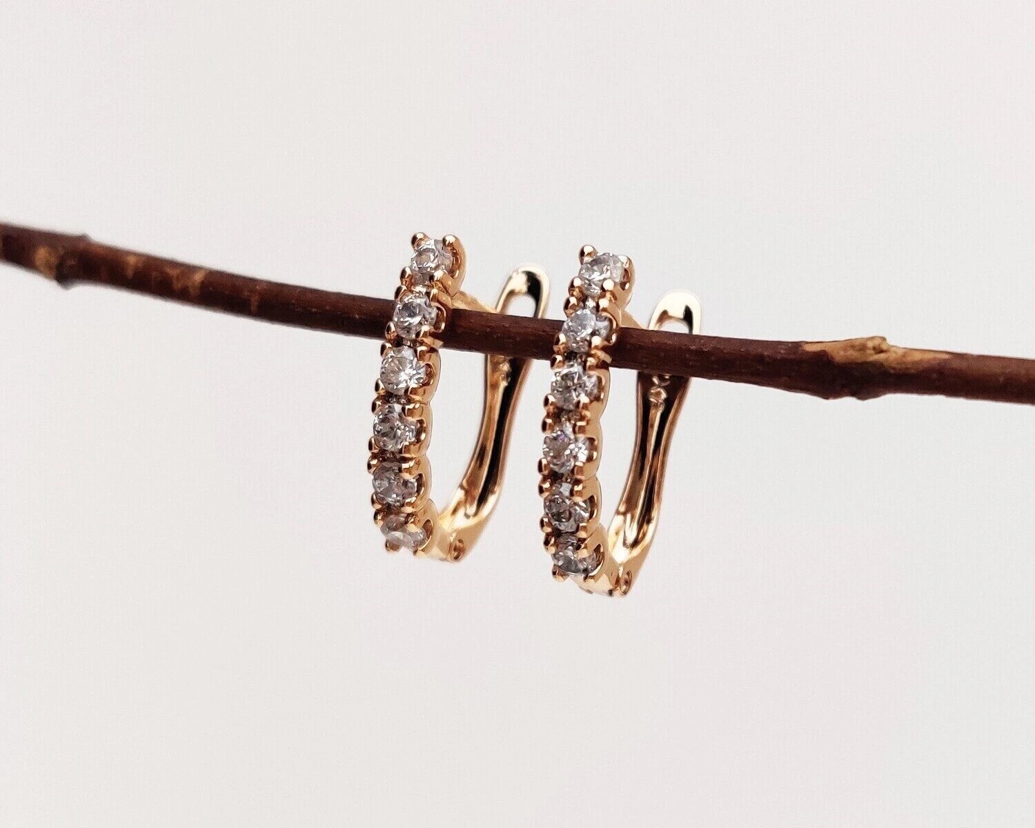 Вставка: Цирконы Материал изделия: ювелирный сплав Размер: 1.5 см Вид(модель) сережек: Английский замочек Красивые серьги с благородными цирконами изготовлены из специального гипоаллергенного ювелирного сплава