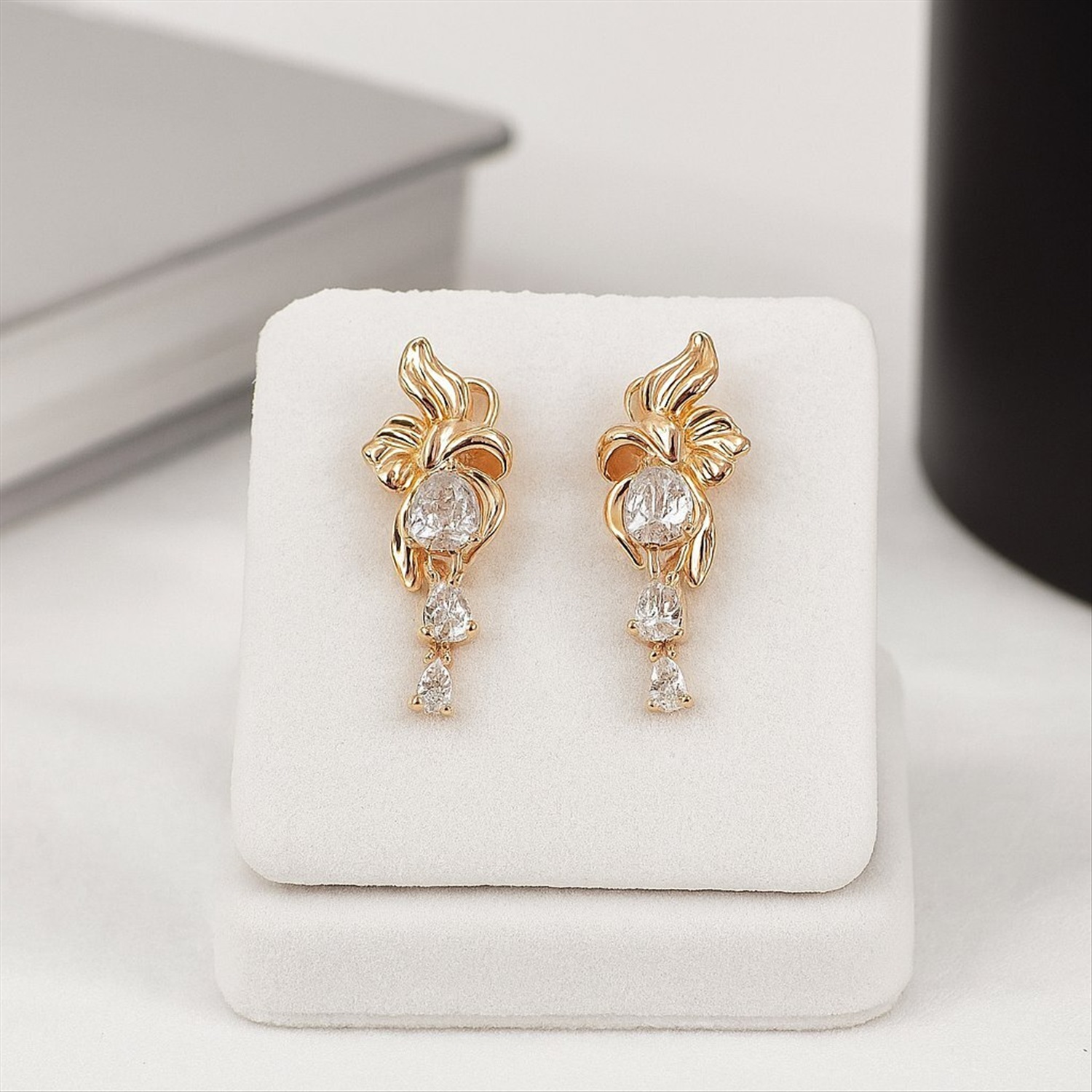Серьги ювелирная бижутерия коллекция "Дубай" покрытие позолота, вставка: фианиты, цвет: прозрачный, арт.007.120