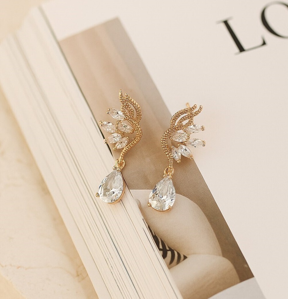 Серьги ювелирная бижутерия коллекция "Дубай" покрытие позолота, вставка: фианиты, цвет: прозрачный, арт.007.170