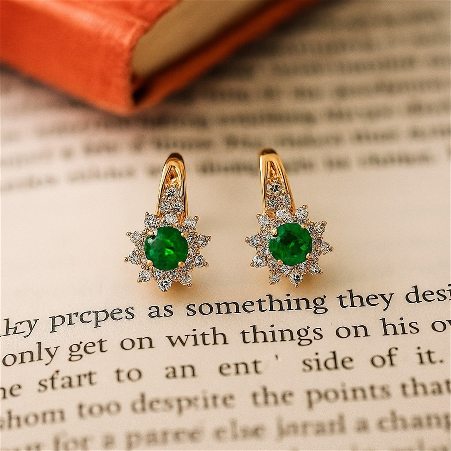 Серьги ювелирная бижутерия коллекция "Дубай", вставка: фианиты и цирконы, цвет: прозрачный и зеленый, арт.007.094