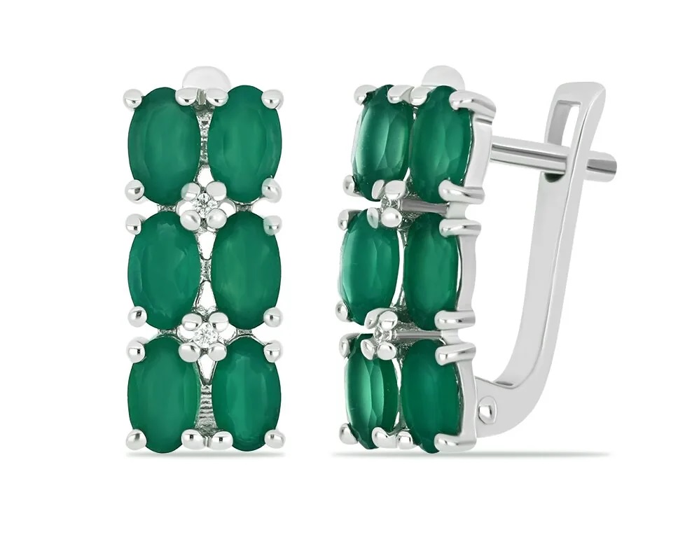 Серьги, арт.658142 Серебро Серебро 925, 3,75 гр., зеленый агат
