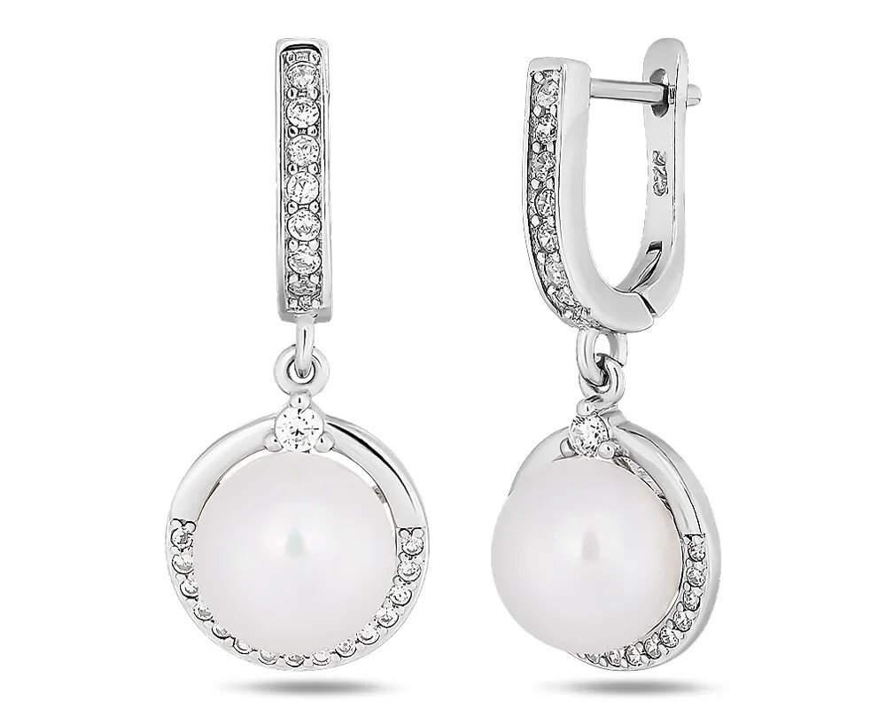 Вставка: Жемчуг Производство: Китай Покрытие: Родирование Ячейка: 6.G.04.03 Стиль: Английский замок Количество: 8 Серьги, арт.657396 Серебро Серебро 925, 4,81 гр., жемчуг Комментарии к товару