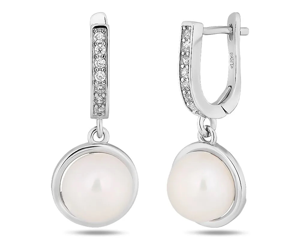 Вставка: Жемчуг Производство: Китай Покрытие: Родирование Ячейка: 6.F.04.03 Стиль: Английский замок Количество: 1 Серьги, арт.657397 Серебро Серебро 925, 4,93 гр., жемчуг Комментарии к товару
