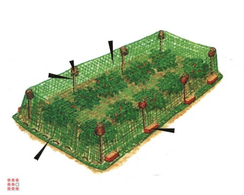 Для её применения не нужно прикладывать больших усилий. Она имеет не большой удельный вес и компактный размер.На стадии установки сетка от птиц набрасывается на растение и закрепляется подручными средствами.