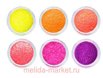 Состоит из 6 баночек с неоновыми блёстками.