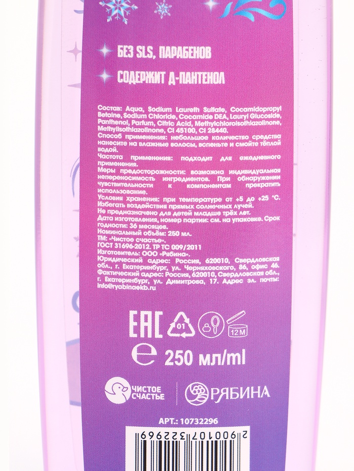 Состав: Aqua, Sodium Laureth Sulfate, Cocamidopropyl Betaine, Sodium Chloride, Сocamide DEA, Lauryl Glucoside, Panthenol, Parfum, Citric Acid, Methylchloroisothiazolinone, Methylisothiazolinone, Cl 45100, Cl 28440.