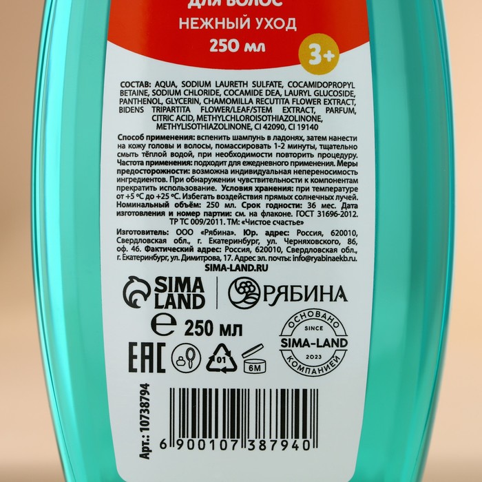 Состав: AQUA, SODIUM LAURETH SULFATE, COCAMIDOPROPYL BETAINE, SODIUM CHLORIDE, COCAMIDE DEA, LAURYL GLUCOSIDE, PANTHENOL, GLYCERIN, CHAMOMILLA RECUTITA FLOWER EXTRACT, BIDENS TRIPARTITA FLOWER/LEAF/STEM EXTRACT, PARFUM, CITRIC ACID, METHYLCHLOROISOTHIAZOLINONE, METHYLISOTHIAZOLINONE, CI 42090, CI 19140