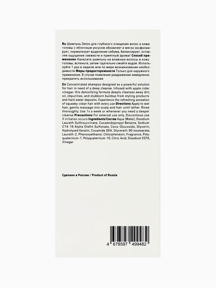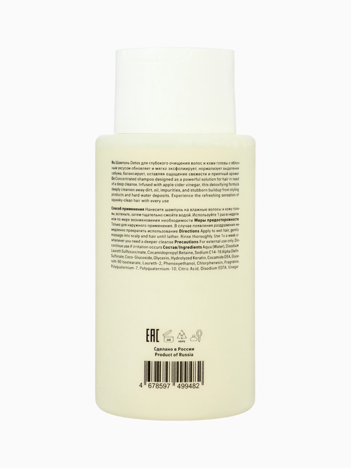 Габариты: 15 x 7 x 7 Страна: Россия В боксе: 6 шт Состав: См. на упаковке Материалы: см. на упаковке Фасовка: по 1 шт Индивидуальная упаковка: Без упаковки Сертификат: ЕАС Для кого: Унисекс, Для мужчины, Для женщины Объём, мл: 280 Аромат: Тропические фрукты Темпер. ограничение НЕ НИЖЕ ℃: 0 Тип волос: Жирные, Нормальные, Для всех типов Эффект: Очищение, Увлажнение, Питание Вид шампуня: Жидкий Глубоко очищающий шампунь DETOX с яблочным уксусом и гидролизованным кератином The Act, 300 мл — эффективное средство для глубокого очищения волос и кожи головы. Шампунь мягко удаляет загрязнения, излишки кожного жира и остатки стайлинговых средств, не повреждая структуру волос. Волосы становятся более мягкими, блестящими и оживлёнными. Формула с гидролизованным кератином восстанавливает структуру волос, укрепляет их и придаёт эластичность. Яблочный уксус балансирует уровень pH кожи головы, добавляет волосам сияние и здоровый вид. Антистатики предотвращают электризацию волос, придают объём, не утяжеляя и не склеивая пряди, что делает шампунь идеальным для ежедневного использования. Состав Вода, динатрия лаурил сульфосукцинат, кокамидопропилбетаин, альфаолефинсульфонат натрия C14-16, кокоглюкозид, глицерин, гидролизованный кератин, кокамид ДЭА, глицерет-90 изостеарат, лаурет-2, феноксиэтанол, хлорфенезин, отдушка, поликватерний-7, поликватерний-10, лимонная кислота, динатрий ЭДТА, яблочный уксус Способ применения
