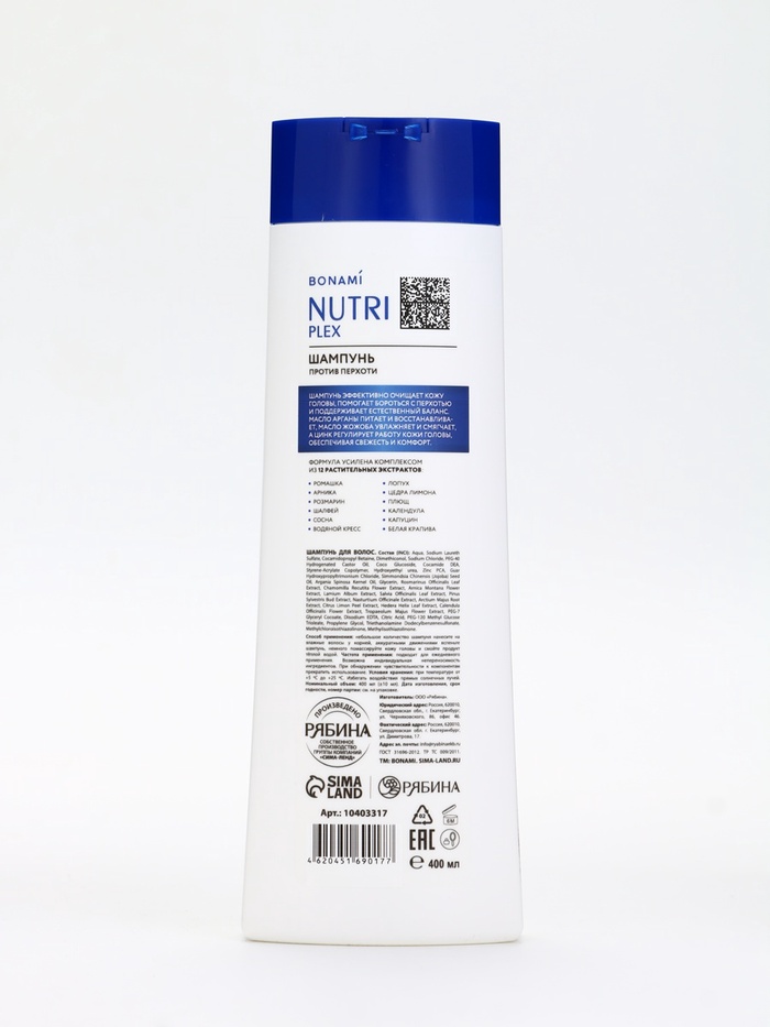 Производитель: BONAMI Габариты: 4,5 x 7,5 x 22,5 Страна: Россия В боксе: 21 шт Состав: См. на упаковке Материалы: см. на упаковке Фасовка: по 1 шт Индивидуальная упаковка: Без упаковки Сертификат: ЕАС Набор: Нет Для кого: Для женщины Вес, г/Объём, мл: 400 Объём, мл: 400 Тематика праздника: Универсальная тематика Адресат: Без адресата Возраст: Для взрослых Тип волос: Для всех типов Эффект: От перхоти Вид шампуня: Жидкий