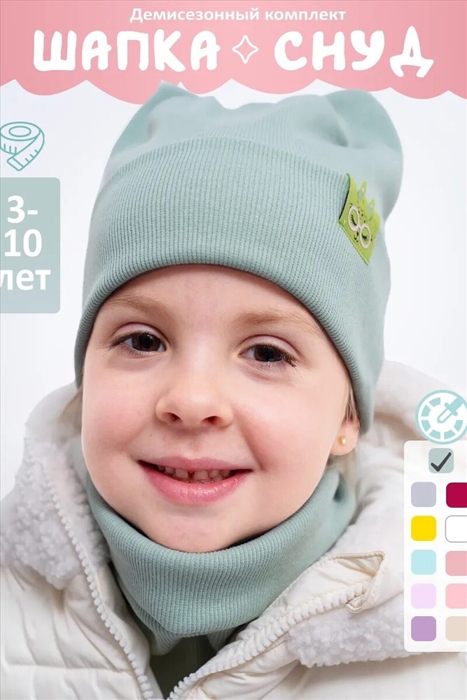 Шапка для девочек со снудом из двойного трикотажа идеальное сочетание стиля и уюта для прохладной погоды. Изготовлена без подкладки из высококачественного материала: 95% хлопка и 5% эластана, что обеспечивает мягкость, эластичность и комфорт. Декоративные элементы в виде ушек добавляют очарования. Снуд надежно защищает шею от холода, создавая дополнительный комфорт. Этот комплект станет отличным выбором для модных девочек, даря тепло и стиль в одном аксессуаре.