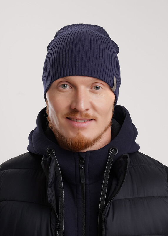 Шапка связаная ластиком, декорирована стильной нашивкой. Подойдёт для осенне- весеннего периода.
