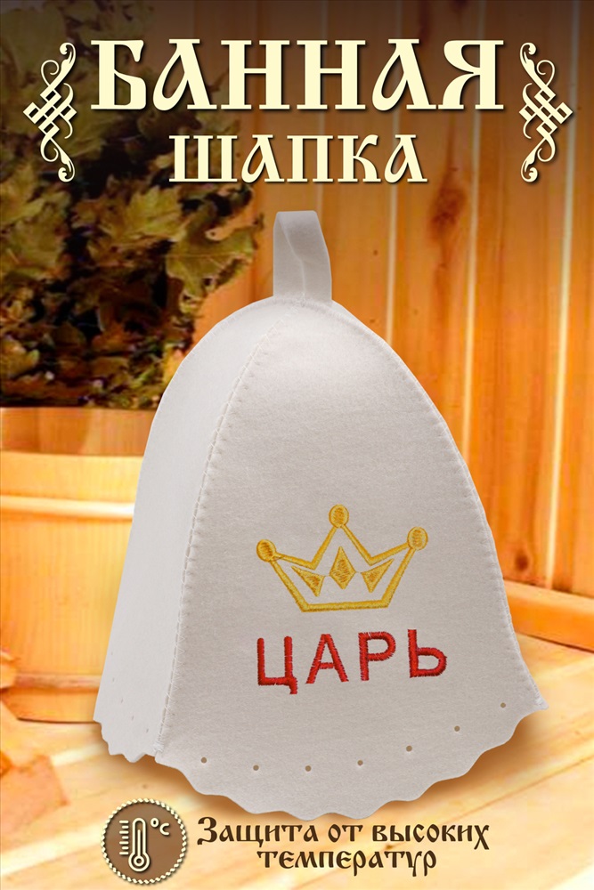 Шапка для бани изготовлена из натурального войлока и имеет универсальный размер, что делает ее удобной для ношения в бане или сауне. Головной убор защитит вас от перегрева во время СПА процедуры. Банная шапочка имеет красивую качественную вышивку Царь