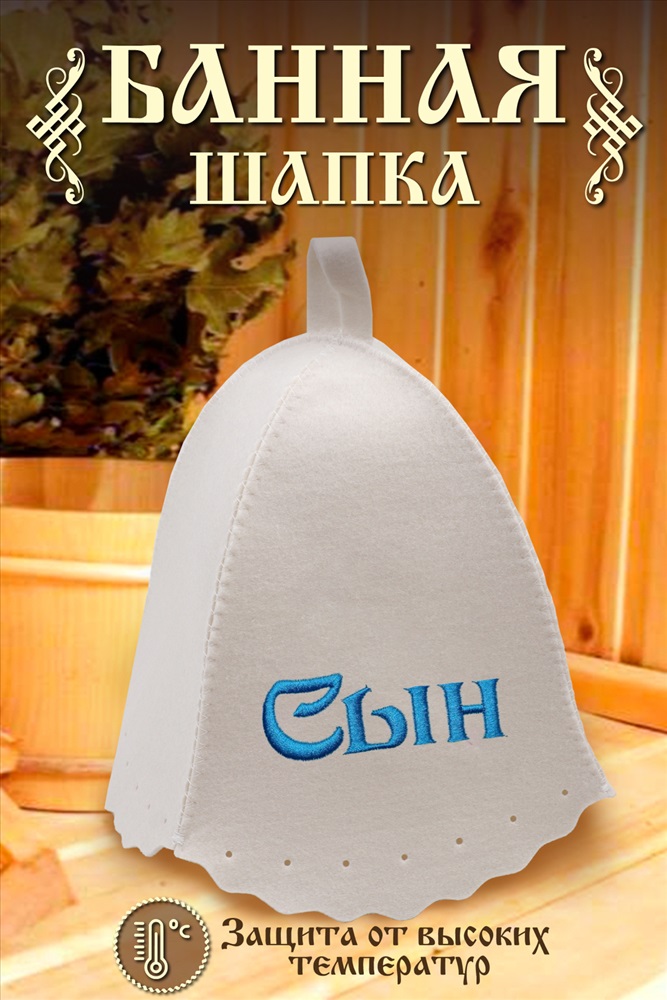 Шапка для бани изготовлена из натурального войлока и имеет универсальный размер, что делает ее удобной для ношения в бане или сауне. Головной убор защитит вас от перегрева во время СПА процедуры. Банная шапочка имеет красивую качественную вышивку Сын