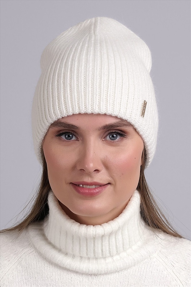 Шапка женская двойная, декорирована стильной нашивкой. Отлично подойдёт для холодной зимы.