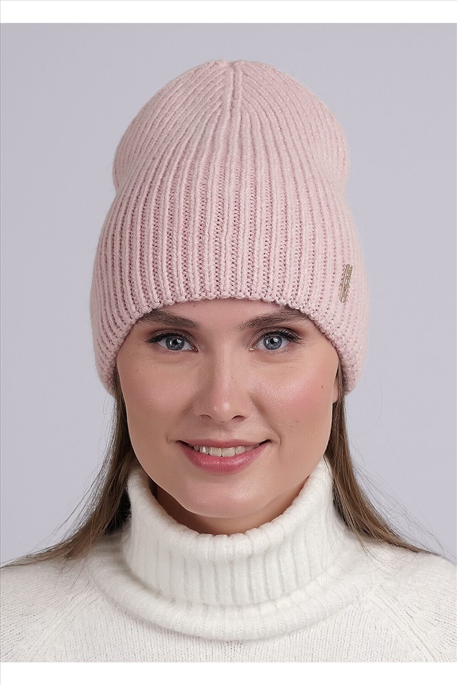 Шапка женская двойная, декорирована стильной нашивкой. Отлично подойдёт для холодной зимы.