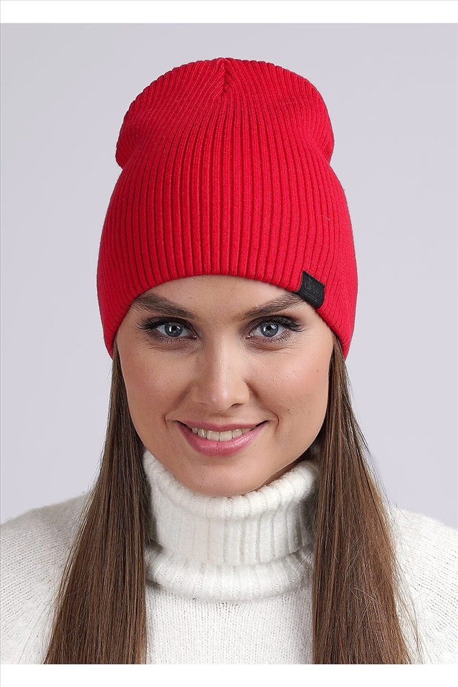 Базовая двойная шапка без отворота, выполнена ластичным переплетением. Декорирована стильной нашивкой. Идальна для холодной осени, тёплой зимы.
