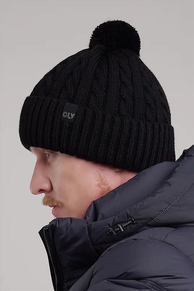 Мужская шапка с отворотом и ниточным пампоном, подклад из флиса по всей голове. Декорирована стильной нашивкой. Станет не только отличной защитой от холода, но и модным аксессуаром.
