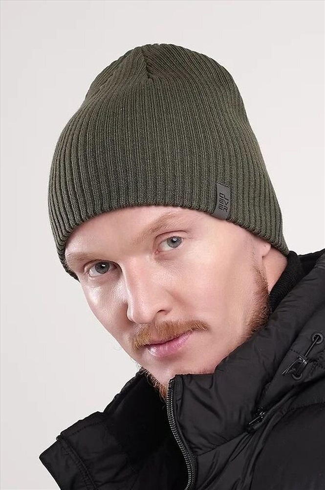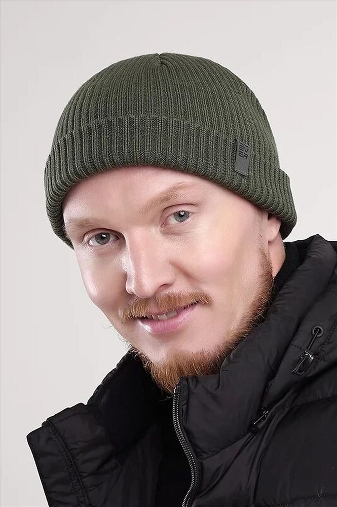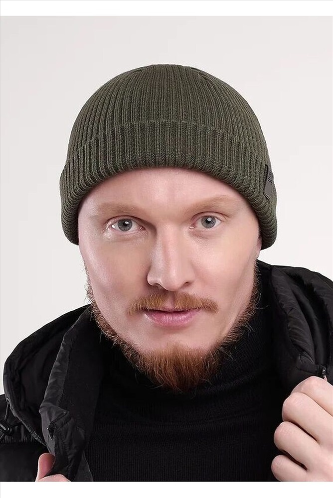Шапка двойная мужская, декорирована стильной нашивкой логотип. У данной модели 2 варианта посадки: с отворотом и без отворота. Идеально для холодной осени-тёплой зимы.