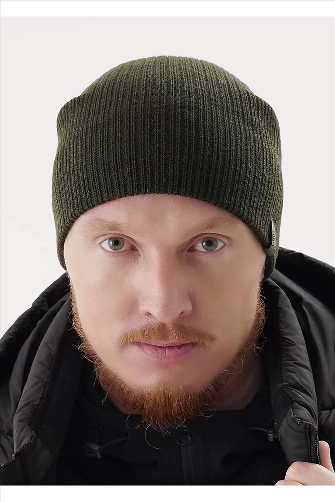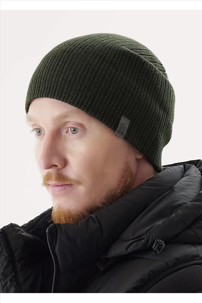 Шапка двойная мужская, декорирована стильной нашивкой логотип. У данной модели 2 варианта посадки: с отворотом и без отворота. Идеально для холодной осени-тёплой зимы.