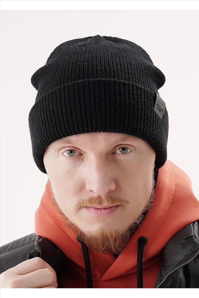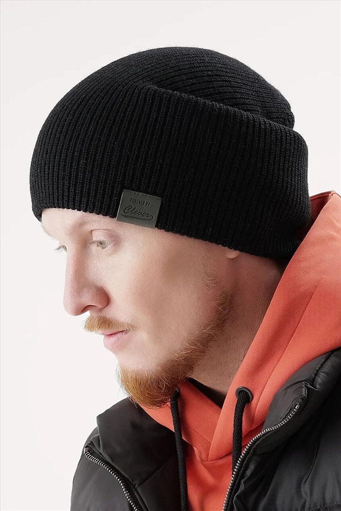 Универсальная двойная шапка, выполнена из высококачественной пряжи с добавлением шерсти. Декорирована имиджевой нашивкой логотип. У данной модели 2 варианта посадки- с отворотом и без отворота. Подойдёт для холодной осени- тёплой зимы.
