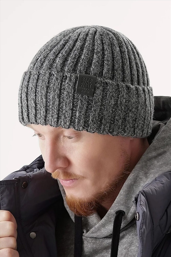 Мужская шапка из скрученой пряжи с отворотом, декорирована стильной нашивкой- логотип. Идеально подойдёт для холодной осени, тёплой зимы.