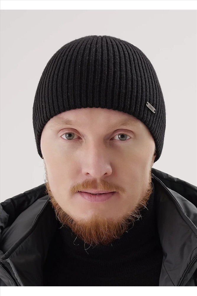 Шапка мужская двухслойная без отворота, без подклада. Выполнена из высококачественной пряжи с добавлением шерсти, декорирована стильной нашивкой в височной зоне. Идеально подойдёт для холодной зимы.