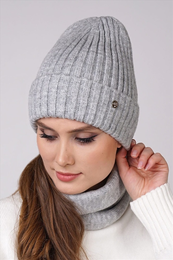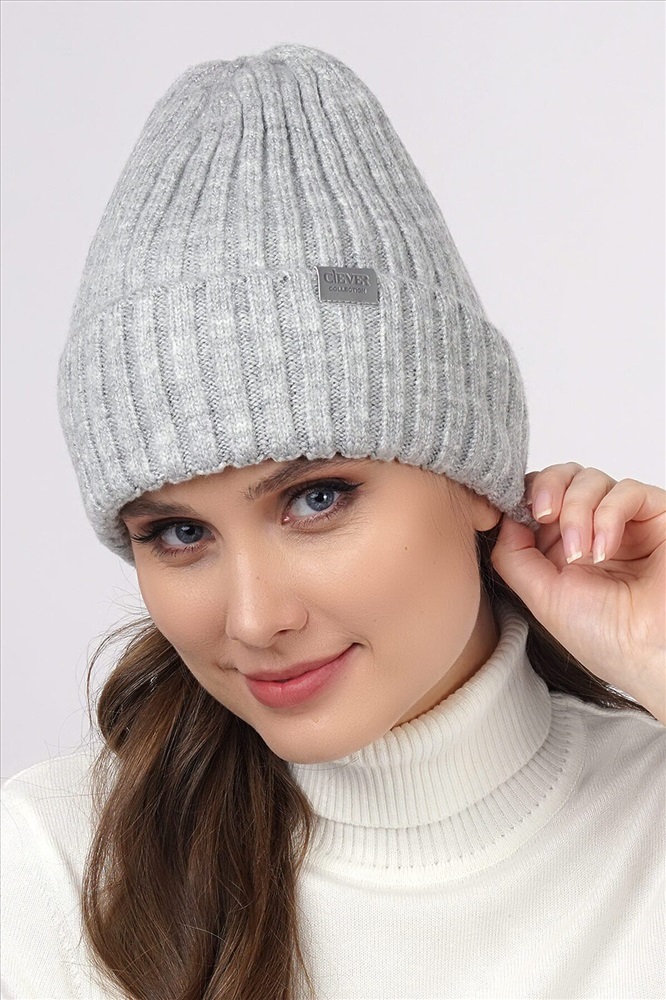 Стильная женская шапка бини с отворотом, выполнена из высококачественной пряжи, декорирована имиджевой логотипом- нашивкой. Дополнительное утепление флисом по всей голове. Идеально подойдёт для зимы.