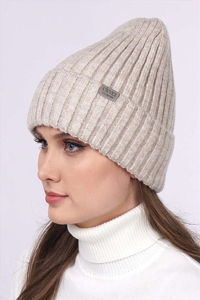 Стильная женская шапка бини с отворотом, выполнена из высококачественной пряжи, декорирована имиджевой логотипом- нашивкой. Дополнительное утепление флисом по всей голове. Идеально подойдёт для зимы.